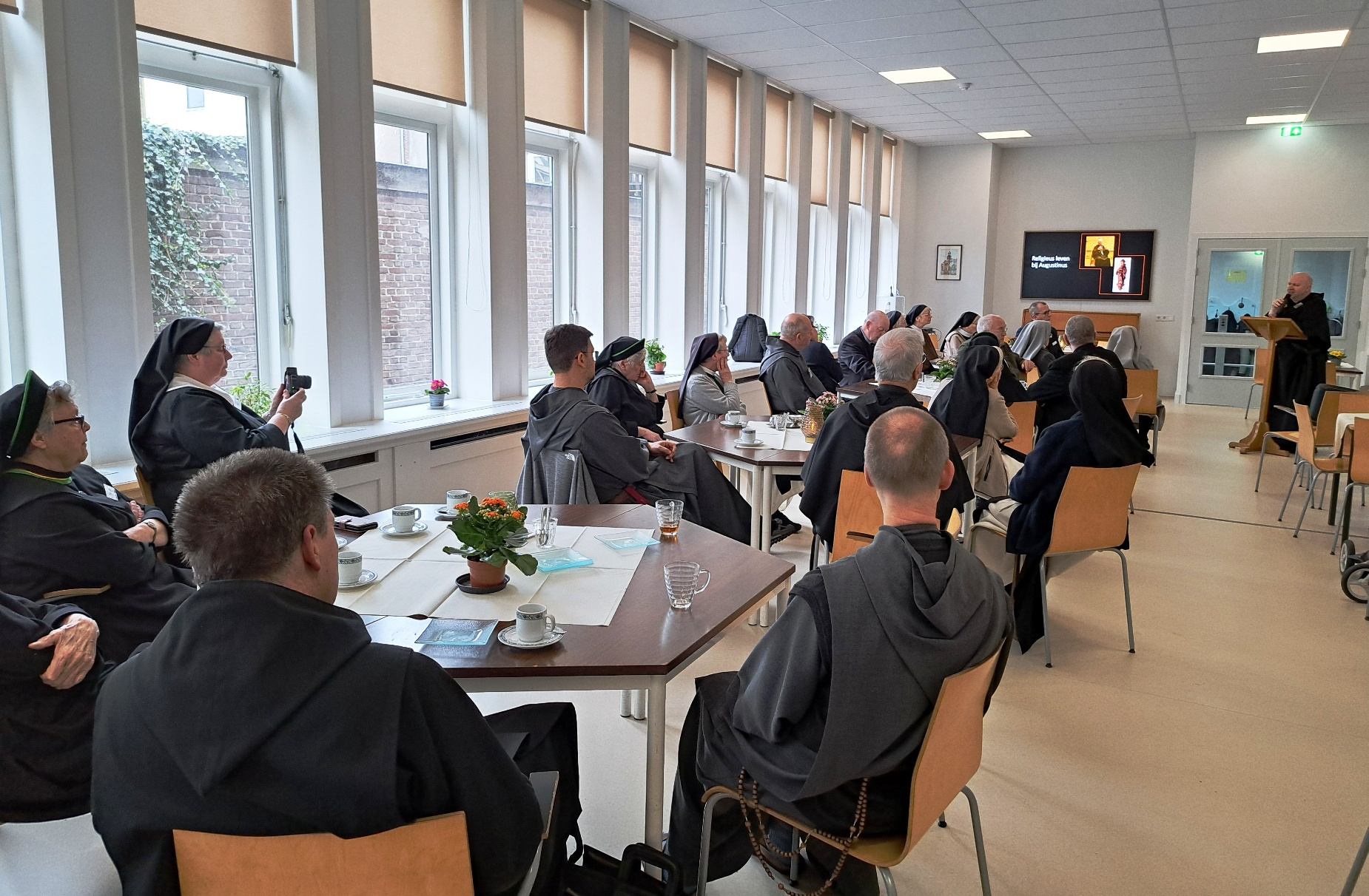 Vervolgens gaf pater Gerben Zweers osa middels een PowerPoint-presentatie een inleiding in de monastieke spiritualiteit van Augustinus (354-430). Hij zei onder meer: “Ik wil u iets vertellen over de monastieke spiritualiteit van Augustinus. Dat is een aspect dat maar weinig aan bod komt, omdat de nadruk doorgaans erg ligt op de theologie van Augustinus, op zijn taken als bisschop en zijn visies op Kerk, sacramenten, genade en het staan in de wereld. (…). De kern van zijn monastieke spiritualiteit verwoordde Augustinus als volgt: ‘Allereerst moet u eensgezind tezamen wonen, een van hart en een van ziel op weg naar God’.”