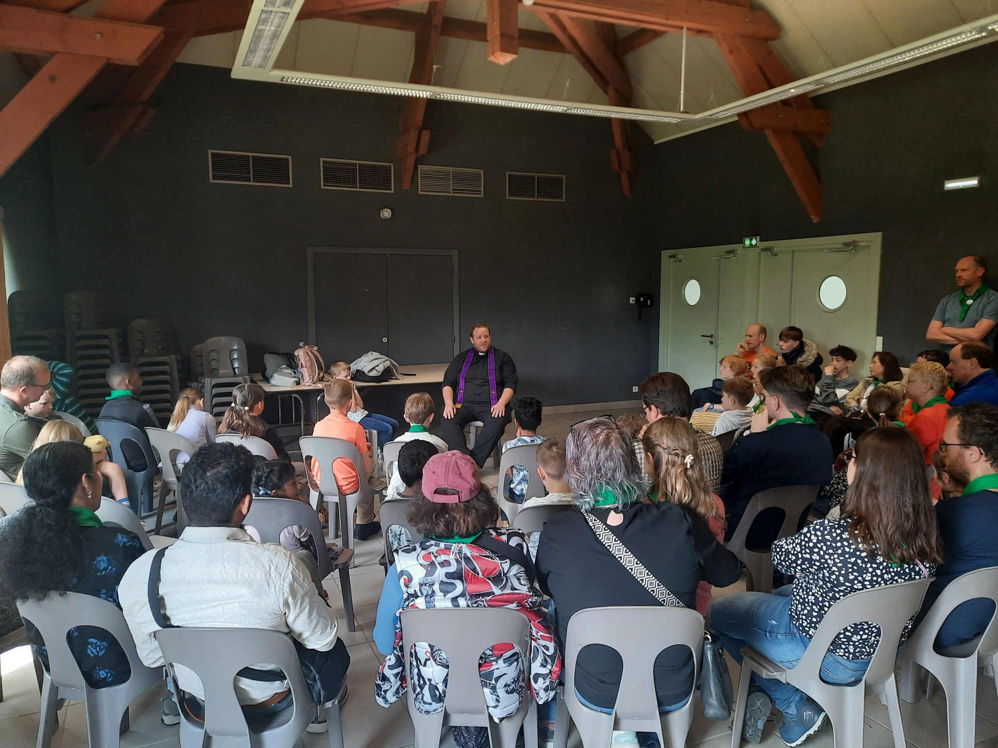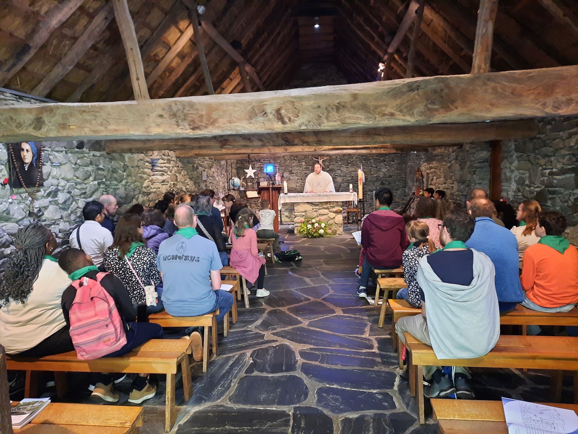 We werden wakker op een heerlijk groen en rustig Cité St. Pierre onder het genot van fluitende vogeltjes. Wat een fijne plek! Na het ontbijt zijn we begonnen met een korte gebedsviering waarin we stil hebben gestaan bij het thema van deze week. Vandaag ging het over vreugde en speelden we een groot levend ganzenbord met verschillende opdrachten voor de kinderen om uit te voeren. Ook hadden we een rondleiding op Cité, waar we een eigen ‘schaapskooi’ hebben. Het hoogtepunt (letterlijk en figuurlijk) was toch wel de ‘groene kathedraal’, een prachtige plek buiten waar de H. Mis gevierd kan worden voor 1.000 mensen.