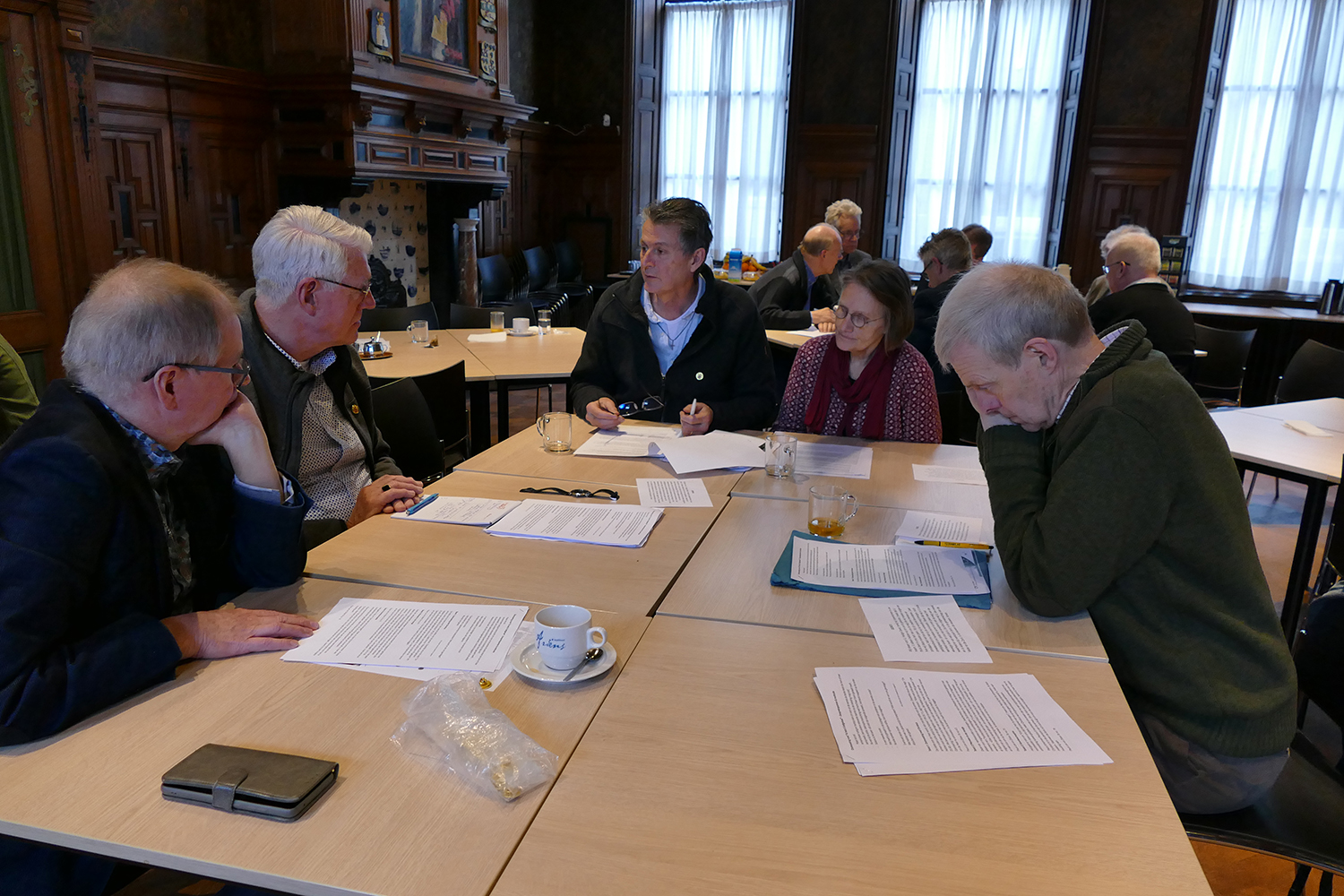 Aansluitend zou diaken Buijkx een inleiding verzorgen met theologische verdieping van het thema armoede, onder meer aan de hand van ‘Dilexi te’. Omdat het programma echter iets uitliep en “iedereen toch ook nog vol is van het betoog van Leo Wijnbelt,” werd besloten deze presentatie per e-mail toe te sturen aan de diakens en verder te gaan met de ontmoeting rond de woorden ‘Ik heb u liefgehad’ in de vorm van een synodaal ‘gesprek in de Geest’. De diakens en hun echtgenotes verdeelden zich in vier groepjes. Ieder kon uit een zevental korte teksten een passage kiezen die hem of haar aansprak, deze voorlezen en kort toelichten waarom juist die zin opviel. Dit alles omgeven door momenten van stilte. In een tweede ronde kon gereageerd worden op de bijdragen uit de eerste ronde: na elke spreker was er weer stilte. Vervolgens werden kernwoorden uit deze reacties genoteerd die tijdens de afsluitende plenaire ronde door een vertegenwoordiger van elk groepje gedeeld werden.