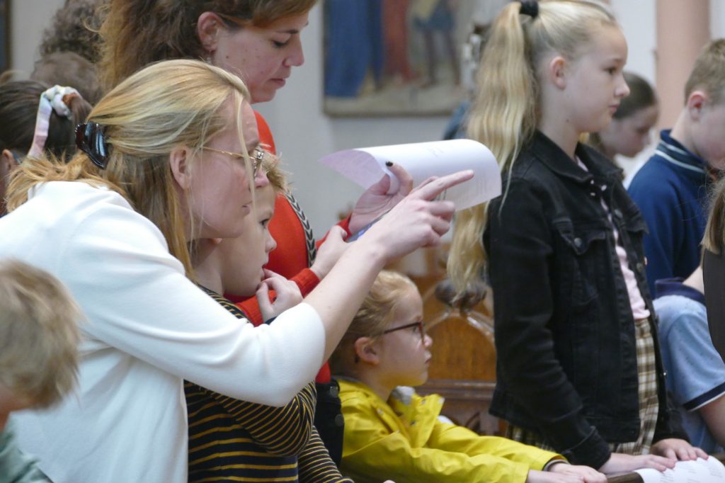 De liturgie werd mooi ondersteund door een muzikaal duo met goed meezingbare liedjes voor de gezinnen. Verder werden de kinderen betrokken door het bidden van de voorbeden en het aandragen van de gaven.
