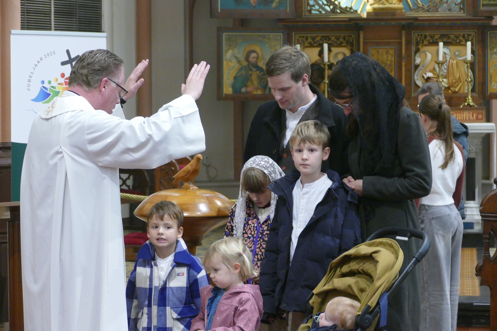 De liturgie werd mooi ondersteund door een muzikaal duo met goed meezingbare liedjes voor de gezinnen. Verder werden de kinderen betrokken door het bidden van de voorbeden en het aandragen van de gaven.