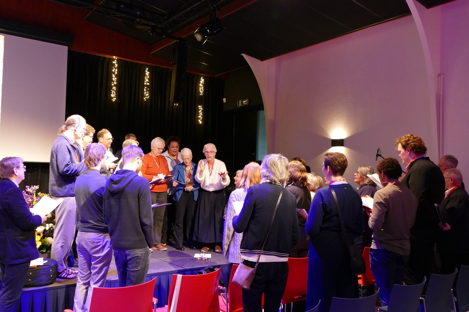 De dag werd afgesloten met een half uur Eucharistische aanbidding. Vicaris Meneses vroeg vervolgens aan een aantal mensen in de zaal om in één woord te zeggen wat ze mee terug namen van deze dag. Dat leverde een waaier aan positieve indrukken op, zoals: vertrouwen, gemeenschap, hoop, verbinding, bemoediging, inspiratie en een dienende parochie.