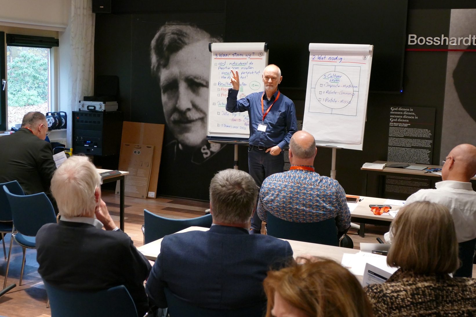 Paul Donders en het team van xpand verzorgden de workshop ‘Leiding geven aan een gezond en vrolijk team’. Daarin kwamen parochianen bijeen om een quickscan te maken van hun eigen parochie. Functioneert het team goed? Is er een gezamenlijk doel en een visie? De deelnemers konden al hun antwoorden invullen in een diagram en zo in één oogopslag zien hoe de parochie ervoor staat. Hoe definiëren we een team? Het pastorale team, het parochiebestuur, het secretariaat, het koor, de schoonmaakploeg… Dit zijn teams die werken in het grote geheel van de parochie. Een goed team werkt aan de hand van vijf elementen die Donders toelichtte: samenwerken, mensen winnen, visie bouwen, organiseren en cultuur leven. Met een sterk team, een duidelijke parochie visie en de juiste mensen op de juiste plek kunnen parochiegemeenschappen weer doen waarvoor ze bedoeld zijn: onze naasten helpen, evangeliseren en een hechte gemeenschap bieden die gastvrij is voor iedereen.
