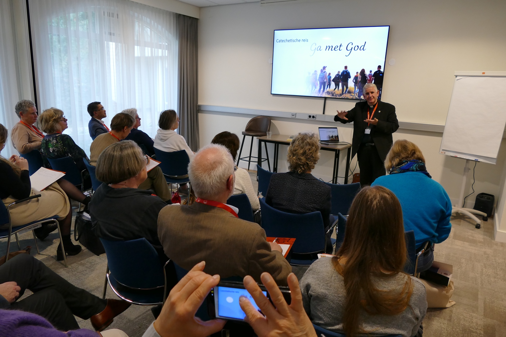Wat betekent de komst van nieuwe katholieken voor het leren in de missionaire parochie? Hier noemde mgr. Hoogenboom ‘de weg’: “De Heer neemt mensen mee op de weg van de catechese. We hebben jarenlang plannen gemaakt voor jongeren, nu melden jongeren zich uit zichzelf en onverwacht bij parochies – de Geest is werkzaam. Het is belangrijk ze te laten groeien in liefde voor elkaar en in liefde voor de Heer.”